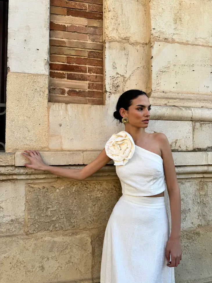 Turn heads with this daring flower-printed or off white tea length skirt set. Designed to command attention, it merges bold floral patterns with a flattering silhouette that moves effortlessly from day to night. Perfect for those who dare to stand out, this set balances sophistication and edge, making your presence unforgettable wherever you go.