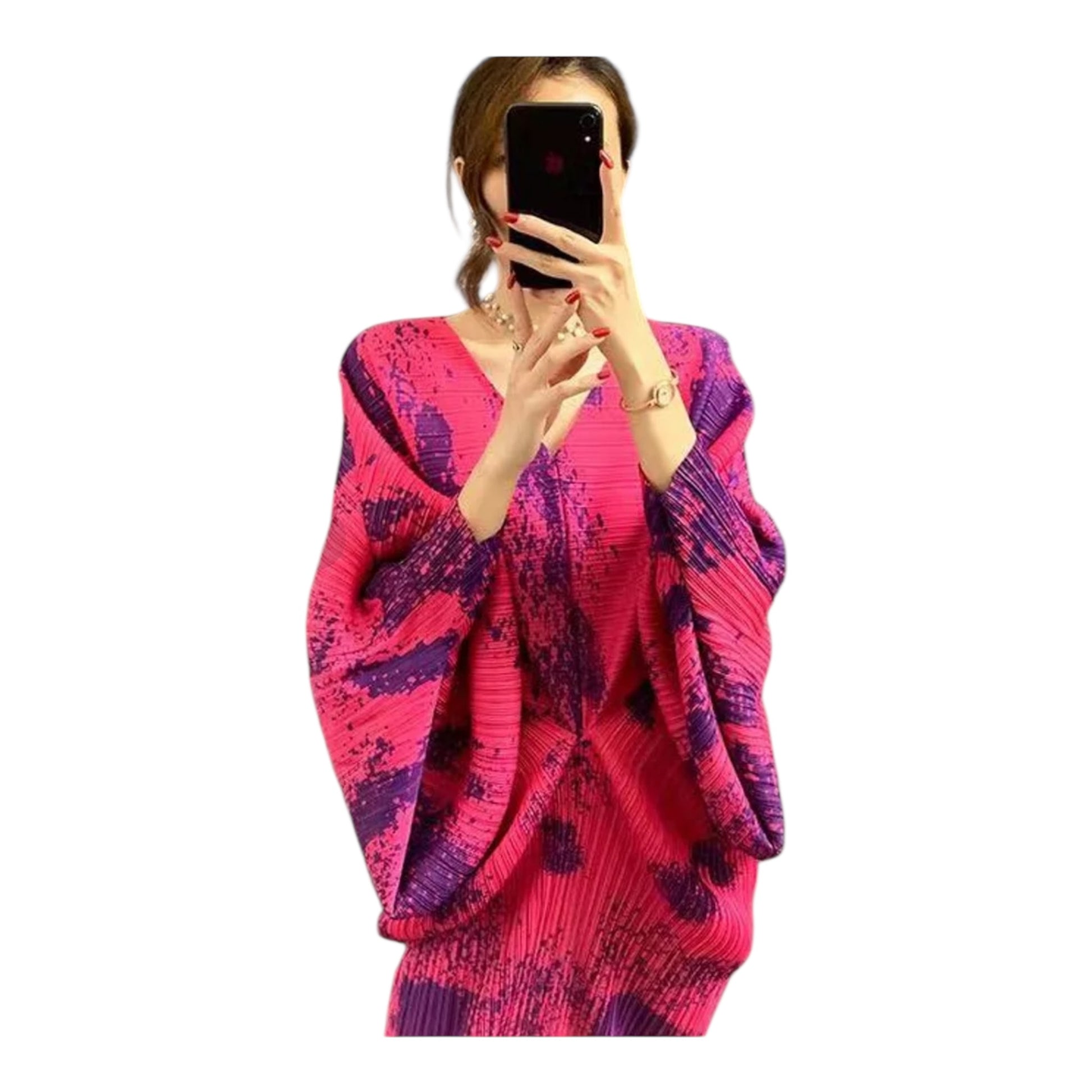 Make a bold statement with our “Mosaic Muse Pleated Midi Dress,” where art and fashion intertwine to create a masterpiece of wearable art. This dress features an eye-catching abstract print with a harmonious blend of autumnal hues that exude confidence and creativity. Perfect for art gallery openings, sophisticated brunches, or just when you want to stand out from the crowd.